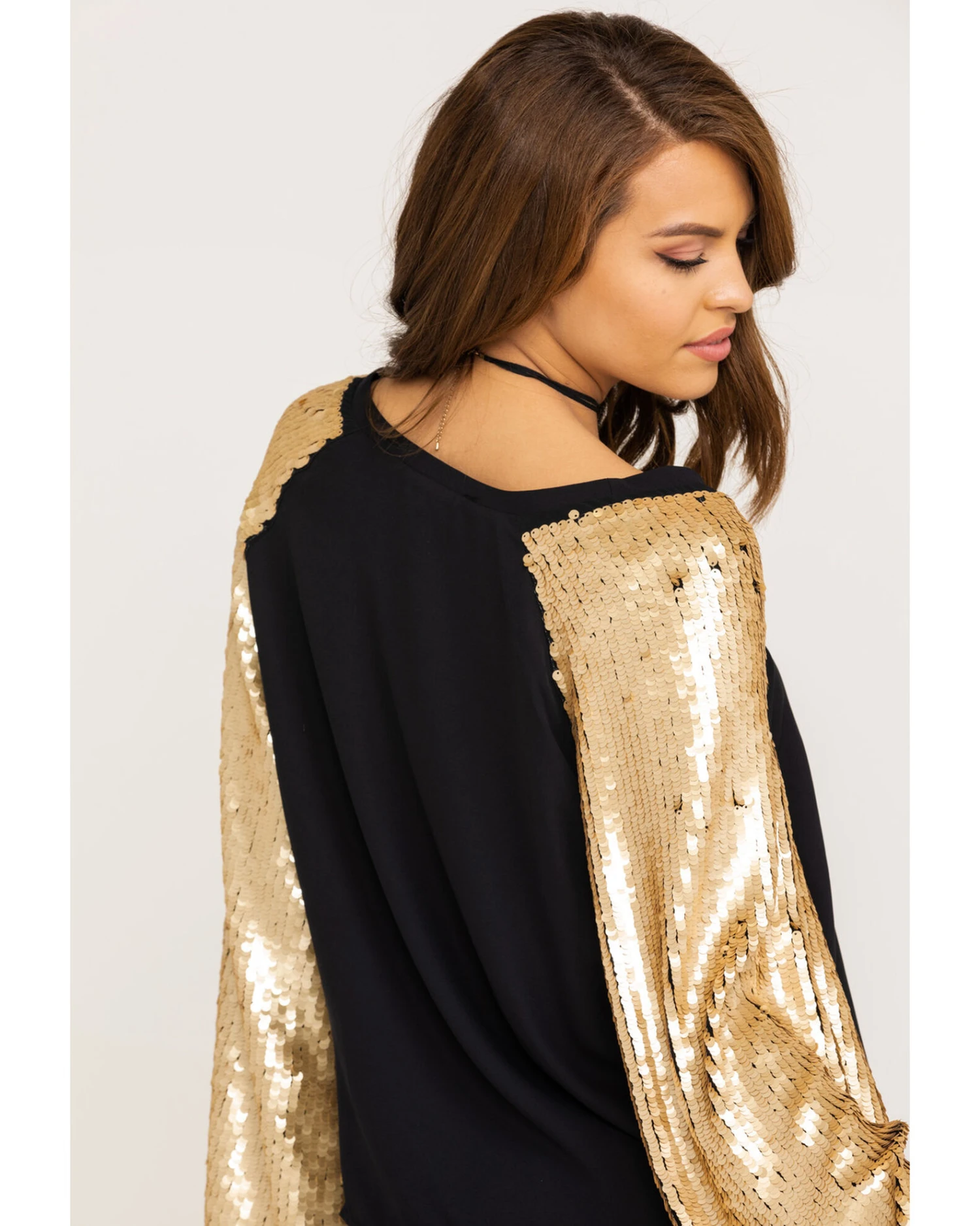 - Sequin chiffon bell sleeves