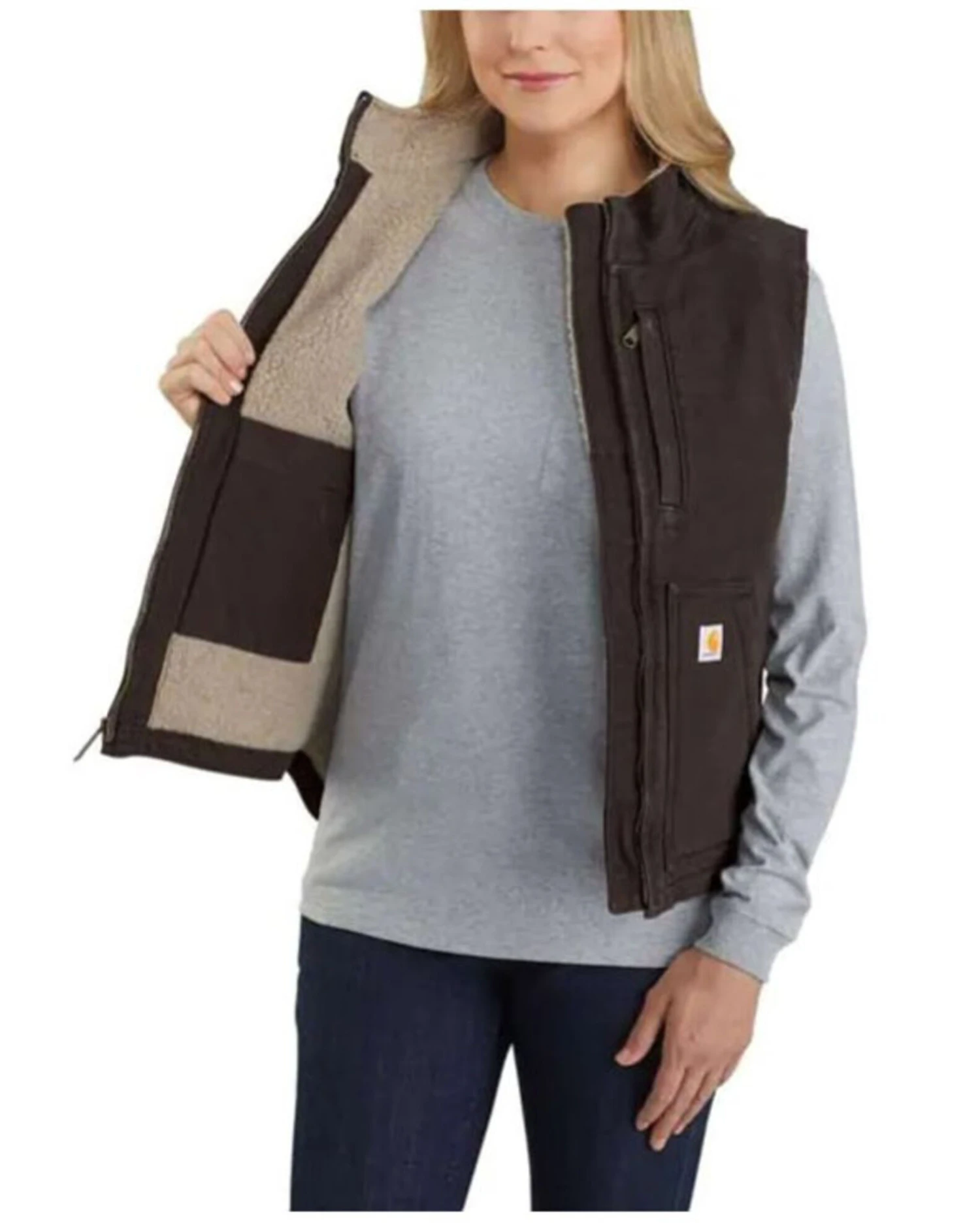 Carhartt Women’s Taupe Washed Duck Sherpa Lined Vest