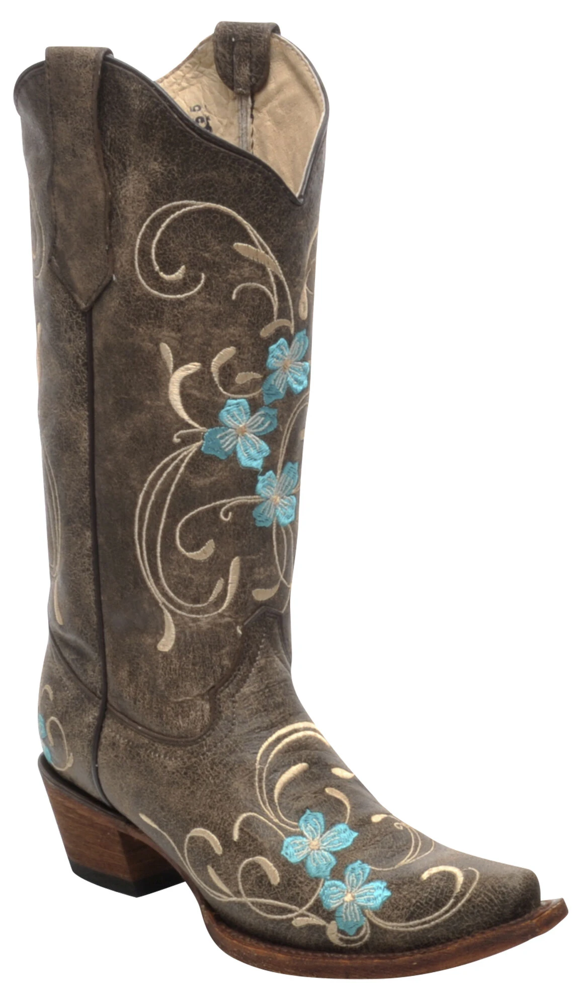 Circle G Women’s Brown Cowhide Floral Western Boots – Snip Toe