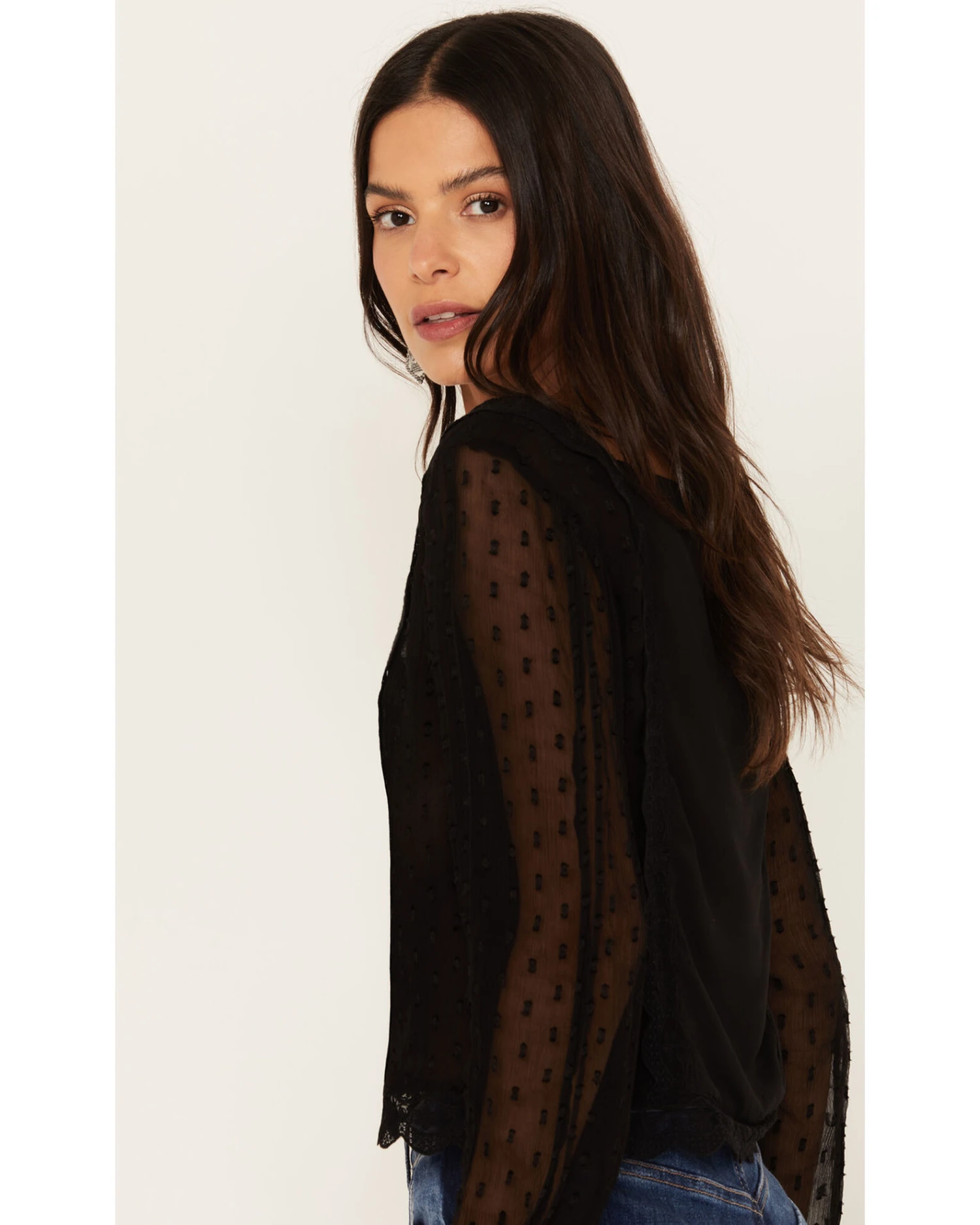 - Long sheer sleeves