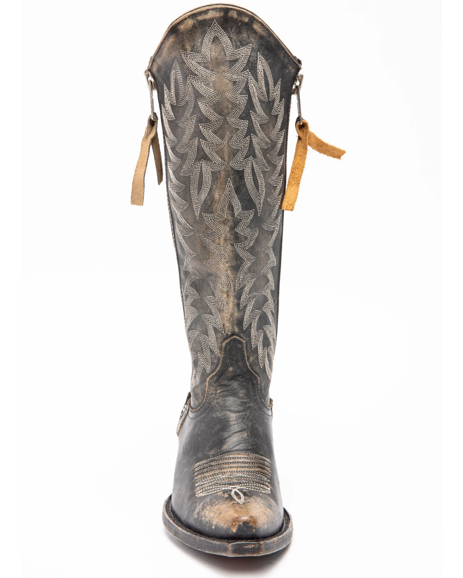 - 13″ zipper shaft with fringe detail